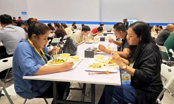 为了让记者们拥有舒适的工作环境,主办方在餐饮供应方面下了一番功夫。记者从餐饮区负责人了解到,峰会期间新闻中心提供的餐食都经过了周密的考量和设计,每一餐都会因地制宜搭配菜品。值得一提的是,在设计菜品菜单时,考虑到参加峰会报道的记者来自不同国家和地区,拥有不同的风俗习惯和文化背景,为了让大家吃得舒心,他们按照报名记者的信息,参考了当地的饮食习惯,精心编制菜谱再进行相关采购,确保让大家尝到喜欢的菜品。